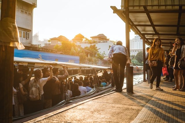ลงท่าเรือผ่านฟ้า จากนั้นข้ามถนนมายังลานมหาเจษฎาบดินทร์ เพื่อนั่งรถเมล์สาย 12 หน้านิทรรศรัตนโกสินทร์ เมื่อรถเมล์เลี้ยวซ้ายตรงอนุสาวรีย์ประชาธิปไตยแล้ว ให้ลงป้ายที่สองที่จอดตรงลานคนเมือง (เลยอาคารศาลาว่าการ กทม.)