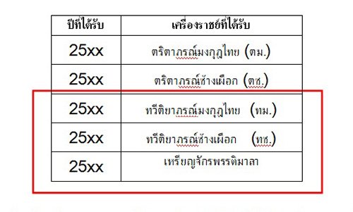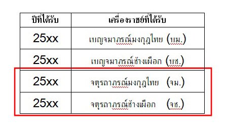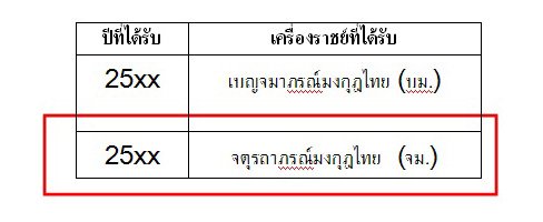 จากนั้นเลื่อนดูว่าเครื่องราชฯที่ได้รับคือชั้นไหนบ้าง ซึ่งโดยปกติแล้ว ตระกูลของเครื่องราชฯ จะแบ่งเป็น 2 ตระกูล คือตระกูลช้างเผือก และตระกูลมงกุฎไทย ให้ดู 2 ตระกูลล่าสุดที่ท่านได้รับ